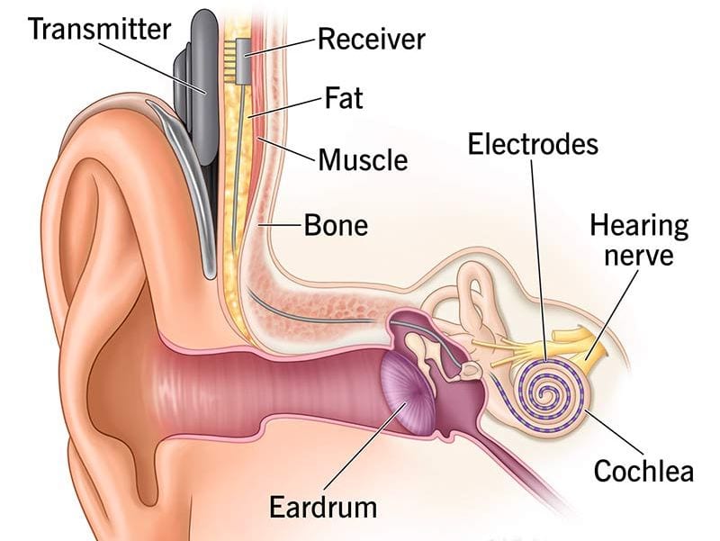 There is a snail-shaped organ in our inner ear (cochlea) that stimulates the hearing nerve. Sometimes this organ gets damaged, genetically or because of infections, causing hearing loss.
