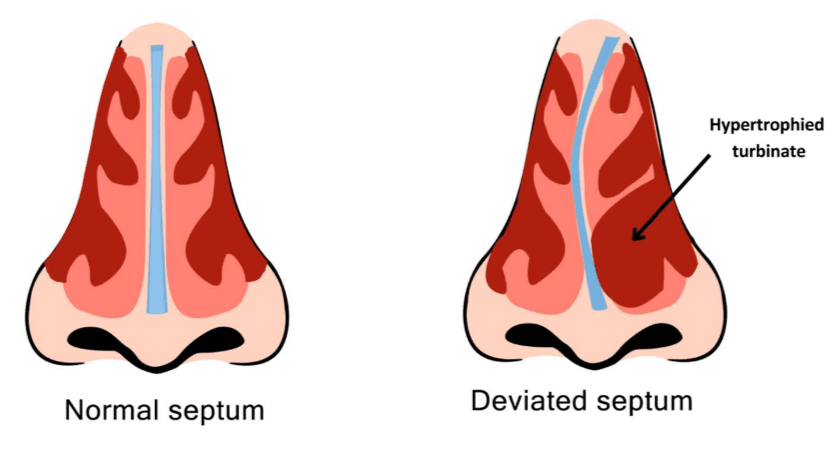The septum is the wall dividing your nose into two passages. When deviated, one side becomes narrower, which restricts airflow.